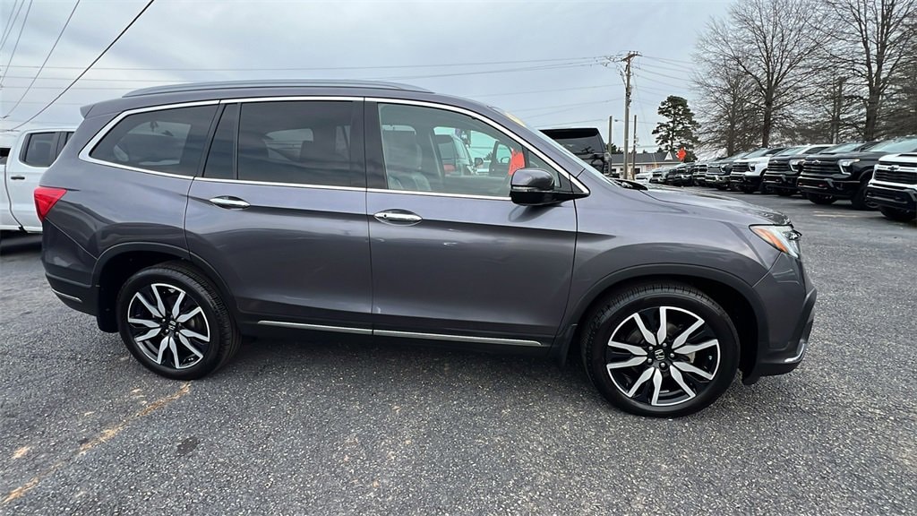 This well-equipped 2019 Honda Pilot Elite includes A/V remote: CabinControl, AM/FM radio: SiriusXM, Auto-dimming door mirrors, Automatic temperature control, Bumpers: body-color, Dual front impact airbags, Emergency communication system: HondaLink, Forward collision: Collision Mitigation Braking System (CMBS) + FCW mitigation, Front anti-roll bar, Front dual zone A/C, Fully automatic headlights, Headphones, Heated door mirrors, Low tire pressure warning, Memory seat, Navigation system: Honda Satellite-Linked Navigation System, Power door mirrors, Power driver seat, Power Liftgate, Power moonroof, Power steering, Power windows, Radio data system, Rear anti-roll bar, Rear window defroster, Remote keyless entry, Roof rack: rails only, Speed-sensing steering, Spoiler, Steering wheel mounted audio controls.