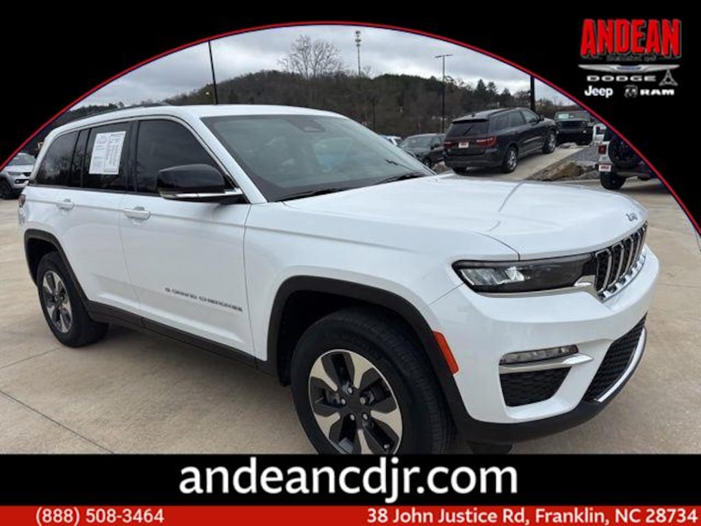 Welcome to Andean CDJR. Our team strives to make your next vehicle purchase hassle free. Copy The Link Below https://www.https://www.andeancdjr.com/financing/application.htm Finance Online, We Can Ship To Your Door! We Have First Time Buyers Program! We Use Over 40 banks and Credit Unions With Lowest Rates Possible For All Types Of Credit! FINANCING FOR ALL TYPES OF CREDIT! BAD CREDIT, NO CREDIT, REPOSSESION NO PROBLEM! SLOW PAYMENTS, BANKRUPTCY, REPOS NO PROBLEM! COLLECTIONS, JUDGEMENTS, DIVORCE NO PROBLEM! TRADE-INS Great! WE BUY CARS Everyday, Even if you don't buy Ours!2022 Jeep Grand Cherokee 4xe 4WD Leather Seats, Power Sunroof, MP3 / I Pod connection, Sirrius XM Radio, 2.0L I4 DOHC, 4WD, 10 Speakers, 10.1 Touchscreen Display, 3.70 Rear Axle Ratio, 4-Wheel Disc Brakes, 4G LTE Wi-Fi Hot Spot, ABS brakes, Air Conditioning, All Radio Equipped Vehicles, Alloy wheels, AM/FM radio: SiriusXM with 360L, Anti-whiplash front head restraints, Apple CarPlay, Audio memory, Auto High-beam Headlights, Automatic temperature control, Brake assist, Bumpers: body-color, Capri Leather Seats, Compass, Connected Travel & Traffic Services, Connectivity - US/Canada, Delay-off headlights, Disassociated Touchscreen Display, Driver door bin, Driver vanity mirror, Dual front impact airbags, Dual front side impact airbags, Dual-Pane Panoramic Sunroof (DISC), Electronic Stability Control, For Details, Visit DriveUconnect.com, For More Info, Call 800-643-2112, Four wheel independent suspension, Front anti-roll bar, Front Bucket Seats, Front Center Armrest w/Storage, Front dual zone A/C, Front fog lights, Front Passenger Interactive Display, Front reading lights, Fully automatic headlights, Garage door transmitter, Global Telematics Box Module (TBM), Google Android Auto, GPS Antenna Input, GPS Navigation, HD Radio, Heated door mirrors, Heated front seats, Heated rear seats, Heated steering wheel, Heavy Duty Suspension, Illuminated entry, Integrated Center Stack Radio, Integrated Voice Command w/Bluetooth, Knee airbag, Leather steering wheel, Low tire pressure warning, Memory seat, Navigation System, Occupant sensing airbag, Outside temperature display, Overhead airbag, Overhead console, Panic alarm, ParkView Rear Back-Up Camera, Passenger door bin, Passenger vanity mirror, Power door mirrors, Power driver seat, Power Liftgate, Power passenger seat, Power steering, Power windows, Pur Wrapped Instrument Panel, Quick Order Package 27F, Radio data system, Radio: Uconnect 5 Nav w/10.1 Display, Radio: Uconnect 5 w/8.4 Display, Rear anti-roll bar, Rear reading lights, Rear window defroster, Rear window wiper, Remote keyless entry, Roof rack: rails only, Security system, SiriusXM Radio Service, SiriusXM Satellite Radio, SiriusXM w/360L, Speed control, Speed-Sensitive Wipers, Split folding rear seat, Spoiler, Steering wheel mounted audio controls, Tachometer, Telescoping steering wheel, Tilt steering wheel, Traction control, Trip computer, Turn signal indicator mirrors, USB Host Flip, Variably intermittent wipers, Voltmeter, Wheels: 18 x 8 Fully Painted Aluminum.CARFAX One-Owner. Odometer is 4643 miles below market average!Located in Franklin, North Carolina in the heart of Western North Carolina. Andean Chrysler Dodge Jeep Ram is just a short drive from the Knoxville, Greenville, Spartanburg, and Asheville Chrysler dealers. We have a wide array of new and used vehicles. We are certain we can assist you in finding a vehicle to suit your every need and want. Information deemed reliable, but not guaranteed. Interested parties should confirm all data before relying on it to make a purchase decision. All prices and specifications are subject to change without notice. Prices may not include additional fees such as government fees and taxes, title and registration fees, finance charges, and emission testing and compliance charges.